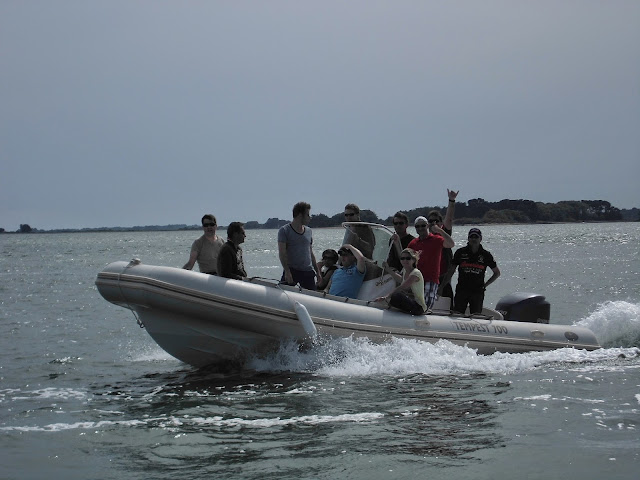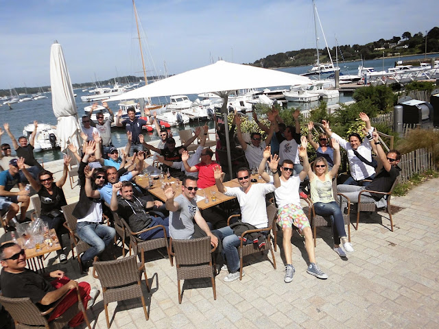 Un départ de 3 semi-rigides, une balade dans le Golfe du Morbihan, un grand soleil, une dégustation d’huîtres dans un cadre idyllique, un relai en kayaks, un tire à la corde et toujours du beau temps…