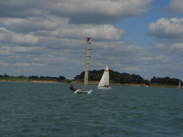 Départ de Carnac samedi matin avec 7 Nacra 570 de Nautic Sport. Après avoir fait le tour de Méaban nous avons déjeuné sur la presqu’ile de Rhuys. L’après midi nous sommes rentrés avec la marée dans le Golfe. Après le tour de l’Ile aux Moines par le Sud, nous arrivons devant Arradon ou nous laissons une partie des bateaux. Nous préparons le bivouac et le repas sur l’Ile Logoden. Le lendemain matin, retour vers Carnac en contournant l’Ile aux Moines de l’autre côté. Nous avons déjeuné à St Philibert avant de rentrer sur Port An Dro en fin d’après midi. Encore un excellent week end sous le soleil avec 15 nœuds de vent et une très bonne équipe sur l’eau comme à terre…