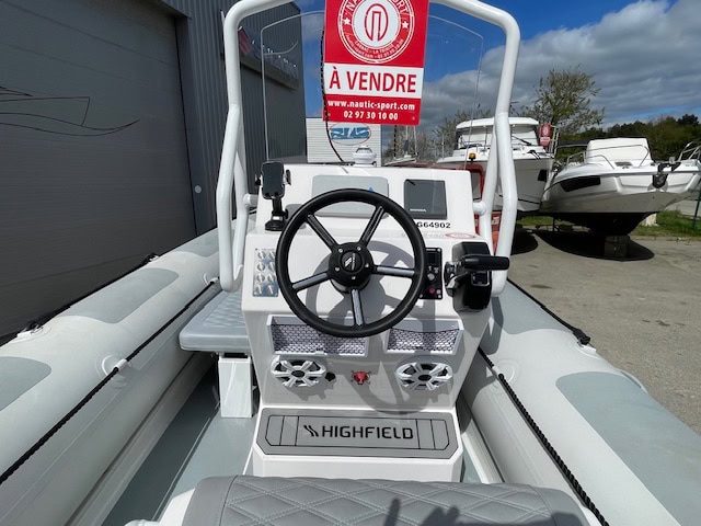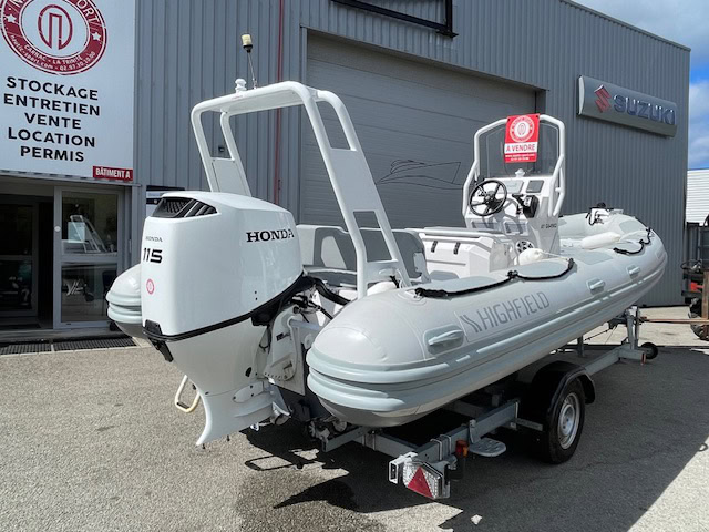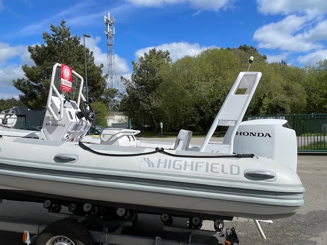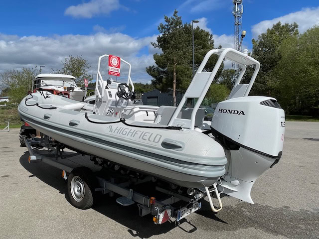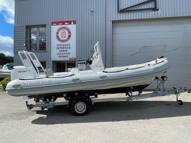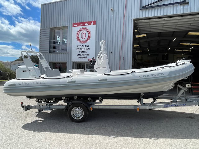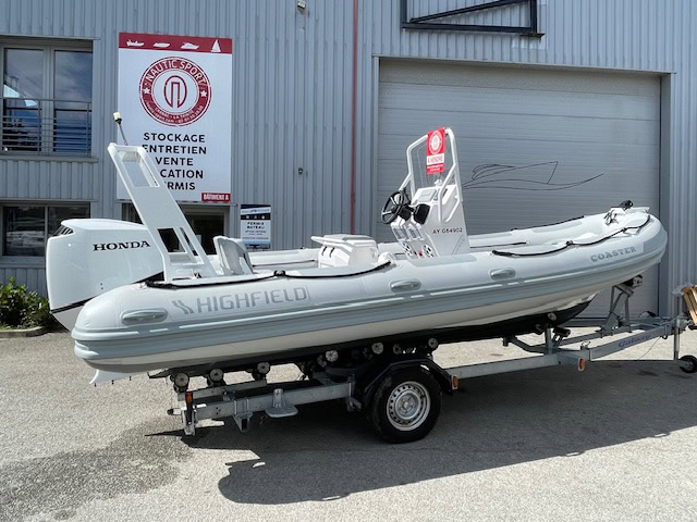En vente chez Nautic Sport un SEMI-RIGIDE HIGHFIELD COASTER 600 PACK FAMILLE. PACK COQUE MOTEUR HONDA ET REMORQUE.