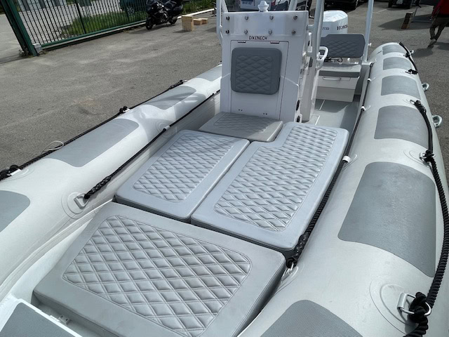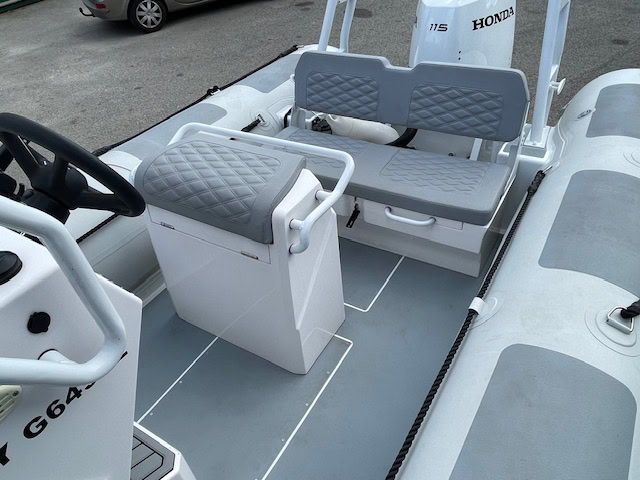 Options inclus : GPS Sondeur Garmin 6cv – Système son – Réservoir d’essence 140L intégré – Flotteurs PVC Melher – Bolster avec coffre intégré – Banquette arrière avec coffre de rangement intégré – Bain de soleil avant amovible – Rollbar avec anneau de tractage pour sports nautiques – Davier, Baille à mouillage + coffre avant – Pack électrique : pompe de cale, prise usb et 12V, Klaxon et feux de navigations, Echelle de bain, Antifouling