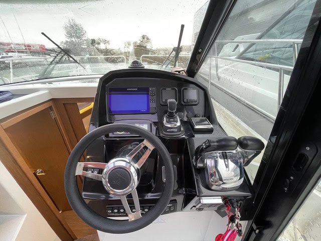 Electronique : GPS/Sondeur HDS 9 LOWRANCE avec sonde et cartho – Pack audio Fusion RA70N – Propulseur d’étrave – Guindeau électrique Flaps électrique – Ligne de quai 220V + chargeur + prise
