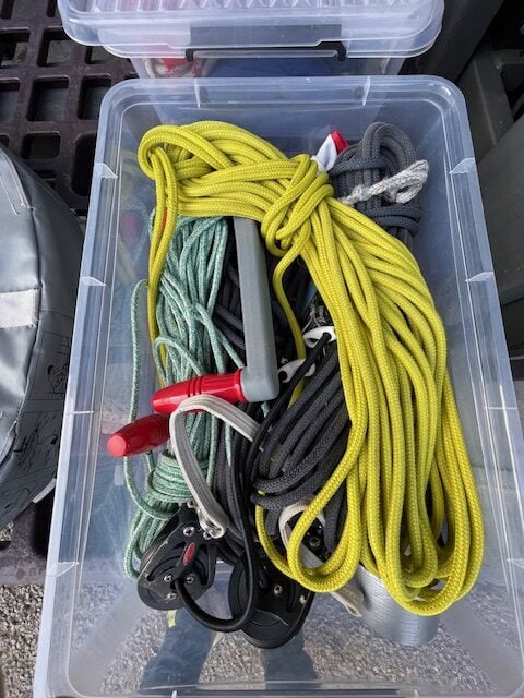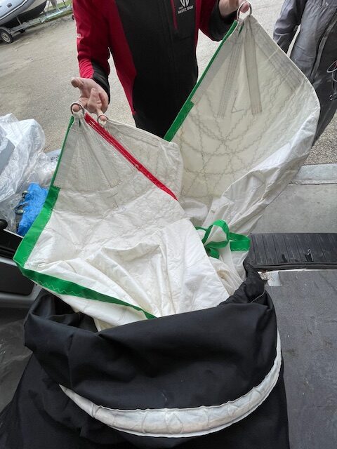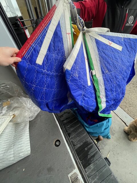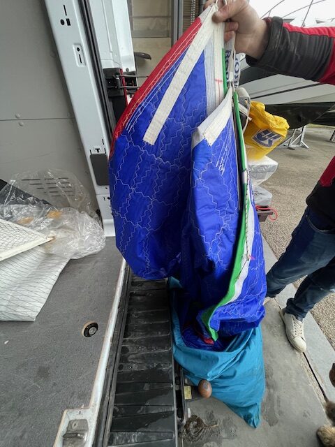 Voiles : GV de 2023 – Génois de 2022 – 2 grands spi (100m²) – 1 spi de capelage – 1 solent